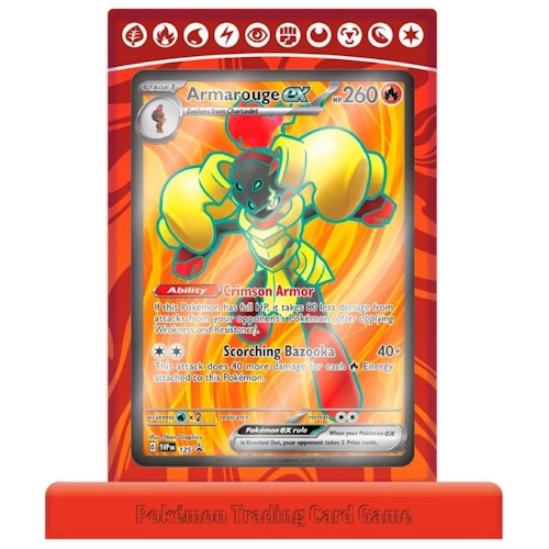 Armarouge EX Premium Collection Box Wakkert De Strijd Aan! Het Pantser Van Armarouge EX Zou De Bron Zijn Van Zijn Ongekende Kracht. Iedereen Die Zijn Vuurkracht Onderschat, Zal Zeker Verbranden! Met Zijn Krachtige Ability En Attack Kan Deze Pokémon EX Zijn Verdedigende Of Aanvallende Capaciteiten Vergroten Terwijl Hij Zich Een Weg Door Gevechten Schroeit. Armarouge EX Verschijnt Hier Als Speelbare Foil Promokaart. Charcadet En Ceruledge Voegen Als Foil Promokaarten Nog Meer Toe!