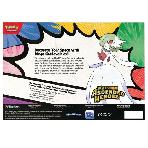 Bewonder de geweldige Ascended Heroes Premium Poster Collection Mega Gardevoir wanneer Mega Dragonite ex het luchtruim kiest en een verzameling Pokémon van topniveau aanvoert in de strijd! Trainer Pokémon en Stellar Tera Pokémon ex sluiten zich aan bij terugkerende en nieuw ontdekte Mega Evolution Pokémon ex, waaronder enkele met speciale illustraties die hun grootste en meest indrukwekkende aanvallen laten zien. Vier de sterren van Scarlet & Violet en het aanbreken van Mega Evolutie